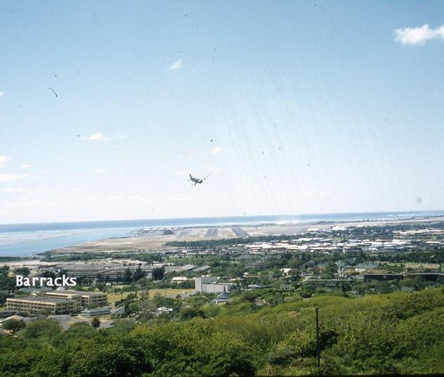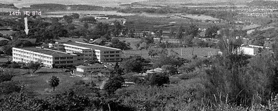 I think Ft Shafter covered about 160 to 200 acres when I was there.. It was not large as Army bases go..Besides the barracks, there were officers housing, officers club, NCO club, a golf course, MP barracks, motor pool (I got stuck being company driver a few times), a small clinic, a theater, chapel, library, and a small rifle, pistol and grenade range.. The pictures I sent seem to distort distance alot, so it was larger than it looks. The landing strip in picture is Hickam Field, now part of Honolulu International Airport.. Ft. Shafter had no air field. The barracks seen in the picture were for all USARPAC personnel.. The 14th had no particular room or bay....We were all mixed together. I don't have a closeup picture of the 14th Hq building but it can be seen near the barracks but was actually three blocks away. I found that the personel in the RB&L were very friendly and a lot of fun. The officers threw a big Christmas party for us with free beer, pop and snacks and they joined in with us in a lot of off-key, but merry Christmas carols.