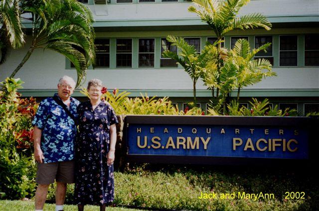 In August of 1957 I married my fiancé, MaryAnn Drinville at the Ft. Shafter chapel. The priest was army chaplain Captain Ira B. Hayes. We found an apartment in a 4-plex one and a half blocks off Waikiki on Cartwright road. Outside our kitchen window was a banana tree with the best tasting bananas in the world. Life was great, and we had a year long honeymoon.