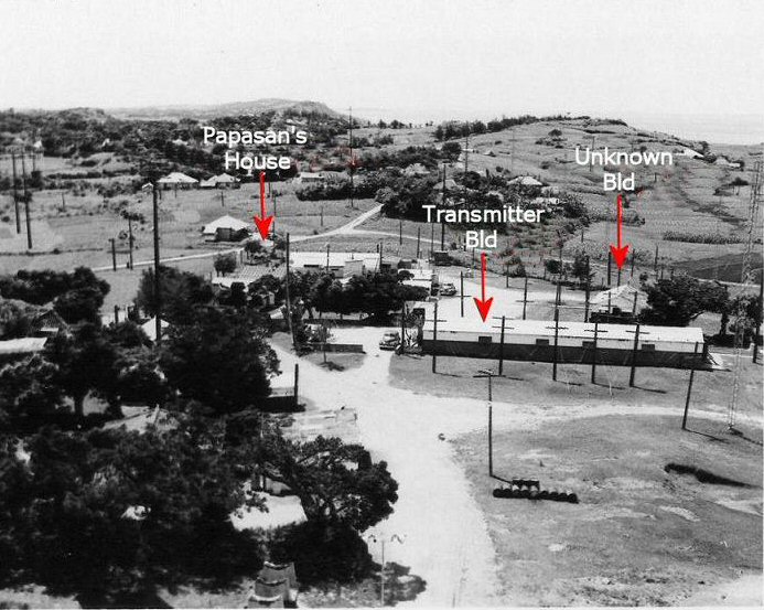 The above photo was provied by Dick Himes who was stationed at the Deragawa (Tairagawa) Transmitter Base on Okinawa from 1955-1956. This photo shows the site was active prior to being inherited by the 14th PsyWar Battalion. The following is an explanation provided by Dick: