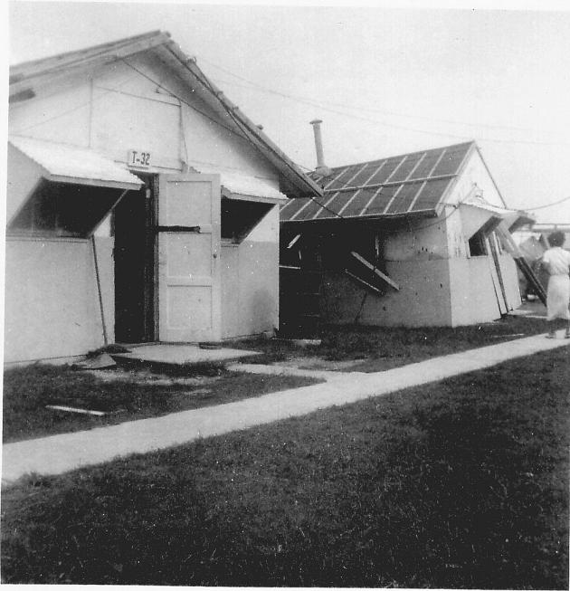 Our group was part of the 13th Communications Squadron out of Kadena AB. Our main radio transmitters were BC610, or BC10, I'm not certain. We had four man crews on duty at all times. Each crew would work three day shifts, then three mid day shifts, and then three night shifts. Upon completion of that cycle, we were off duty for the next three days. Sometime during the summer of 1956, a major typhoon hit Okinawa , and destroyed our six man huts and I believe we were then quartered in the not yet completed micro wave building.