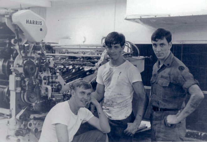 I arrived on Okinawa early March of 1970, as an 83f20 pressman with the rank of E-2. I was assigned to the 7th Pysop Unit and later to the Printing Company. My work schedule was the 3rd shift which began at 10:00PM to 7:00AM 6 days a week. I did this for 17 months. The big joke on the shift was what’s for Breakfast. We printed propaganda leaflets and other assorted jobs for Vietnam. I left Okinawa in August of 1971, with the rank of SP/5 and was assigned to Ft. Ord, California for the remainder of my 3 year enlistment. I now live in Haddon Township, New Jersey. My family and I had a restaurant for 33 years. I am now retired for health reasons but will always be a GDP aka Good Damn Printer. My thanks to Tim for his hard work with this web site. I’m sure we will hear from many more GDPs.....