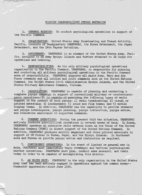 Mission Statement of 14th PsyWar Bn 1962
