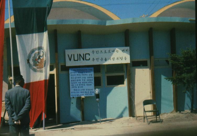 PER DIEM FOR: 30 DAYS @ $9.00 $270.00 1 day @ $14.00$ 14.00 TOTAL$284.00 LESS: 30 Qtrs @ 3.60$108.00 1 Qtr @ $5.60$ 5.60 90 meals @ $1.35$ 121.50 3 meals @ $2.10$ 6.30 Minus TOTAL$ 241.40 AMOUNT CLAIMED$ 42.60 I Wonder What These Numbers Would Be Today ! We did not take any vehicles or equipment on this assignment and were flown to Korea from Kadena to Tachikawa Japan and then on to Kimpo in Korea where we were taken by vehicle to the B&VA Hq located in Seoul.. I have only one surviving very poor B&W photo and one color shot of the B&VA compound. Both can be viewed in the photo section.. Some of our time was spent learning and using the radio broadcasting and monitoring equipment at the station. Daily radio broadcasts used the call sign VUNC or Voice of The United Nations Command.