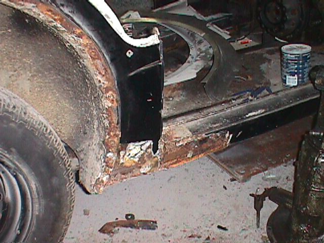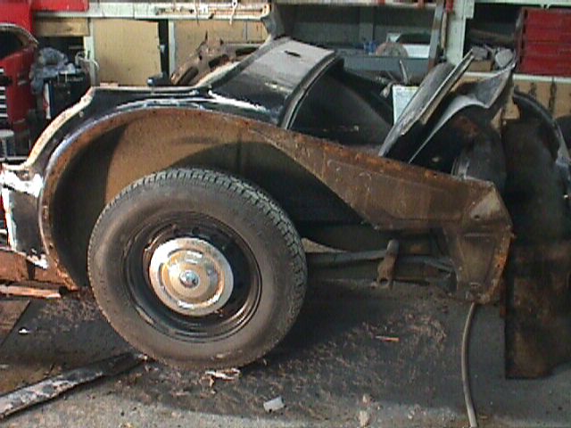 The only fortunate part of this entire nightmare is having a body mechanic with the expertise of an artist. Bunny Dersham of Jersey Shore, PA has literally transformed Frank's "rust bucket" into a solid car as good or better than new. Bunny is no longer restoring cars, but I can count on him for some special projects.