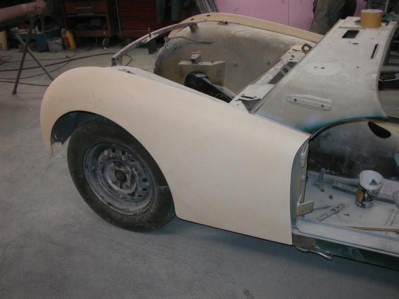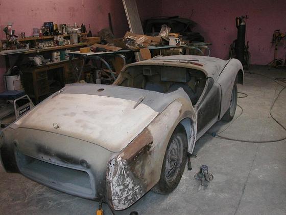 I spotted a listing in a local Car Buyer magazine for a 1958 TR3 that was advertised as having extensive restoration work. I drove to the Foreign Car dealer service in Middletown and looked at the car. I asked the owner and his assistant if the car had any body damage and Bondo (Body Putty). They both answered "No" the several times I asked this question and further replied that the car needed only "cosmetic work". The price was pretty steep (I am embarrased to admit how much), but he showed me a long list of things he said he had done to the car. I said OK since a reputable sports car dealer mechanic would not lie about such things..............