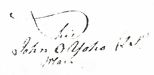 Preceeding John's name is the word "His" surrounded by a scrolled loop