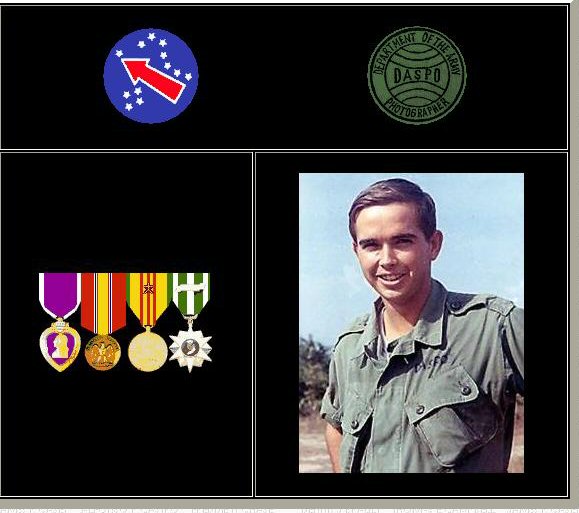 The above left image was obtained from the Virtual Wall Website and includes the USARPAC and DASPO Patches, The Purple Heart, National Defense Medal, The Vietnam Service Medal, and The Vietnam Campaign Medal. The above image was obtained from the Virtual Wall Website. The picture of Kermit was taken in Vietnam by an unknown photographer.