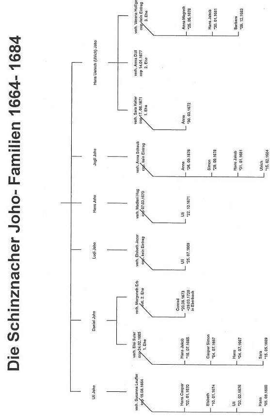 The earliest known Joho's in Schniznach arrived in 1528. Herman Eiermann who published a history of Conrad Joho (1673-1728) reported that this Unknown Named Joho was the grandson of Gery Joho (ca 1435-?) whose father was Routschmann Joho (ca 1395-?).. Routschmann is the oldest known Joho and lived in Baden. Eiermann also reports that the following six Joho's were known to have lived in Schinznach: